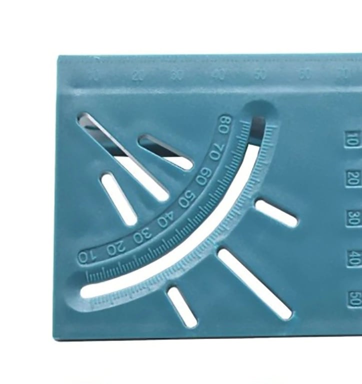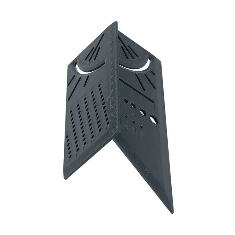 The multifunctional carpenter's ruler is the ideal tool for every carpenter and engineer. It offers features such as a ruler, protractor, holes for measuring drill bits, and holes for easily creating parallels with the edge of the material. Just insert a pencil into the required hole and move the entire ruler.