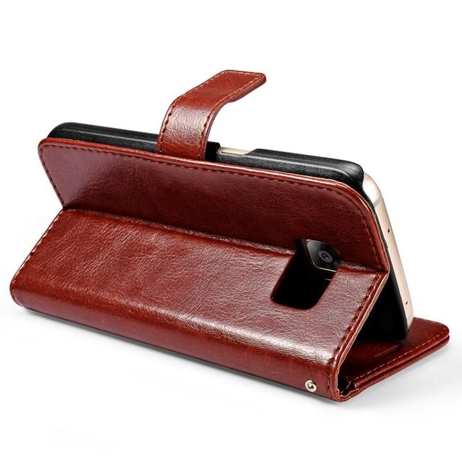 The case designed for the Samsung Galaxy S7/S7 Edge perfectly protects the phone from damage. The high-quality synthetic leather material prevents scratches and wear. The modern case features slots for payment cards and, when tilted correctly, creates a stand that enhances video watching.