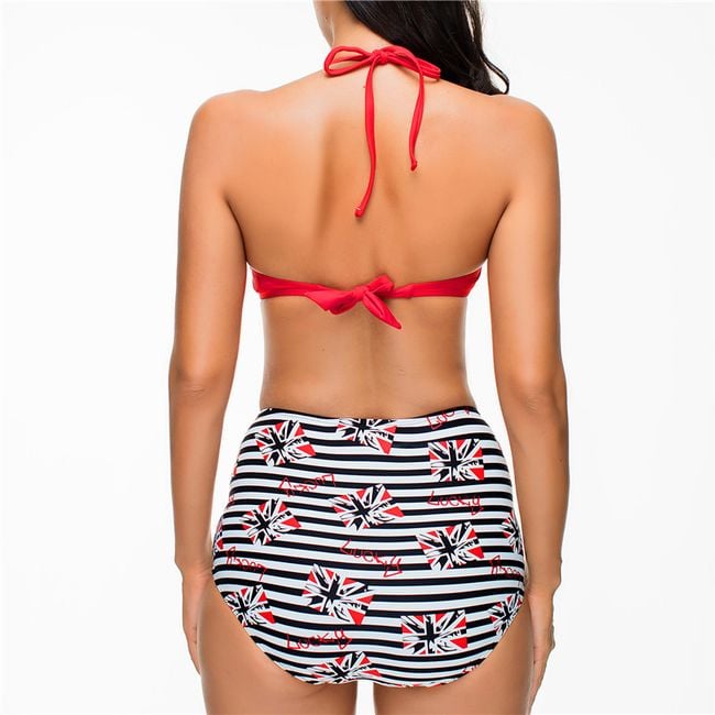 Women's sexy swimwear features a high waist and is adorned with a stylish striped pattern.