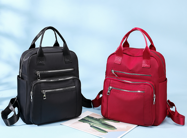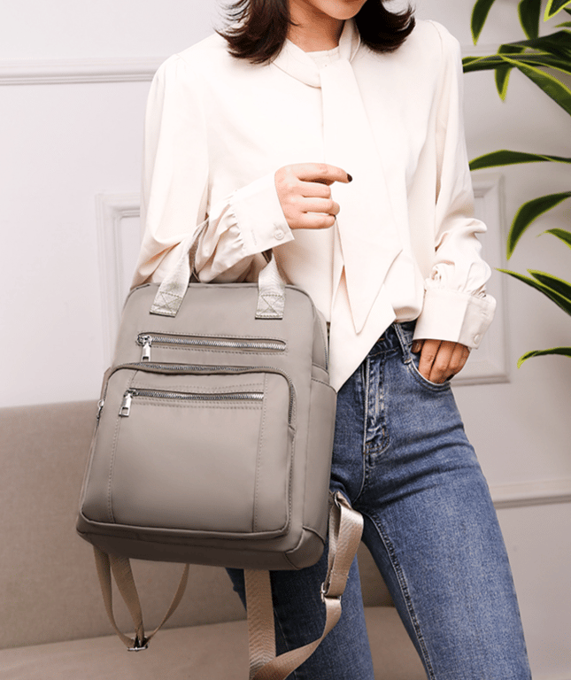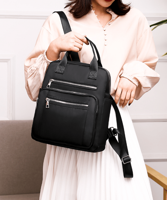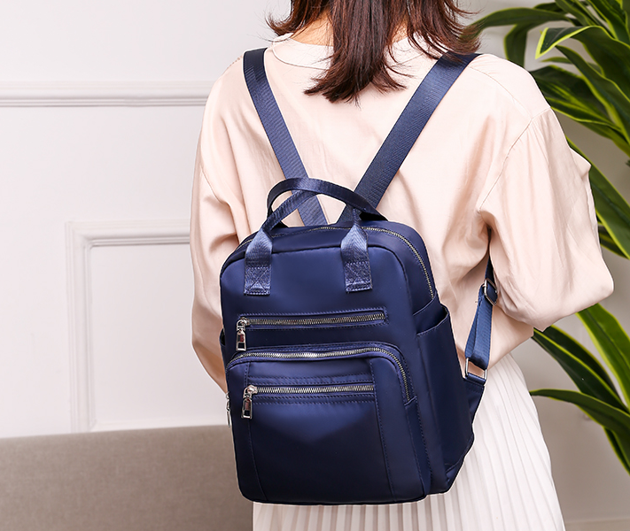The backpack has one large main pocket as well as three front pockets, which are ideal for storing a phone, cosmetics, etc.