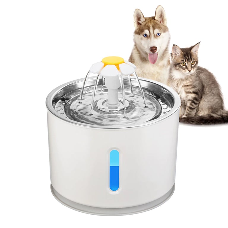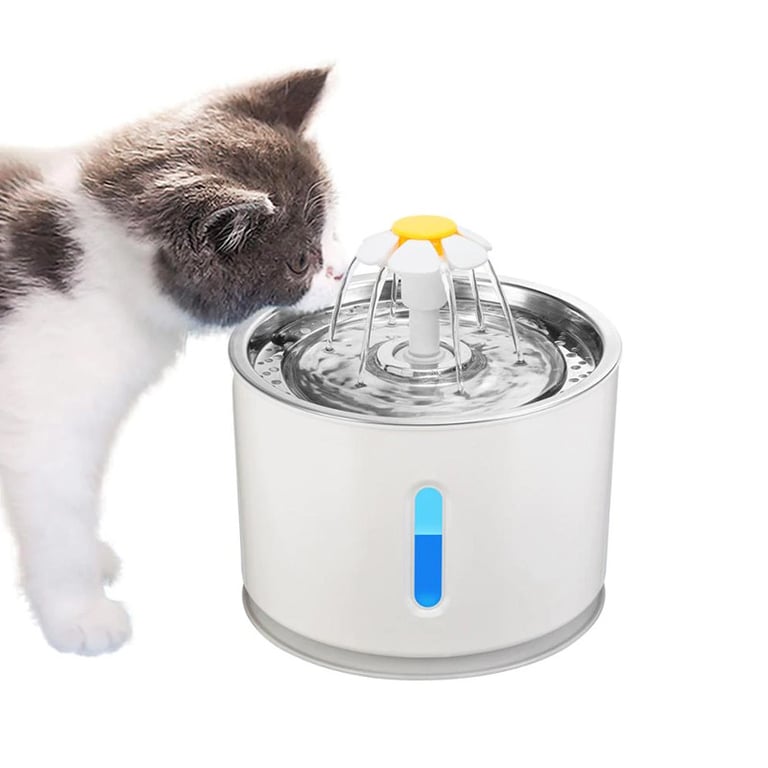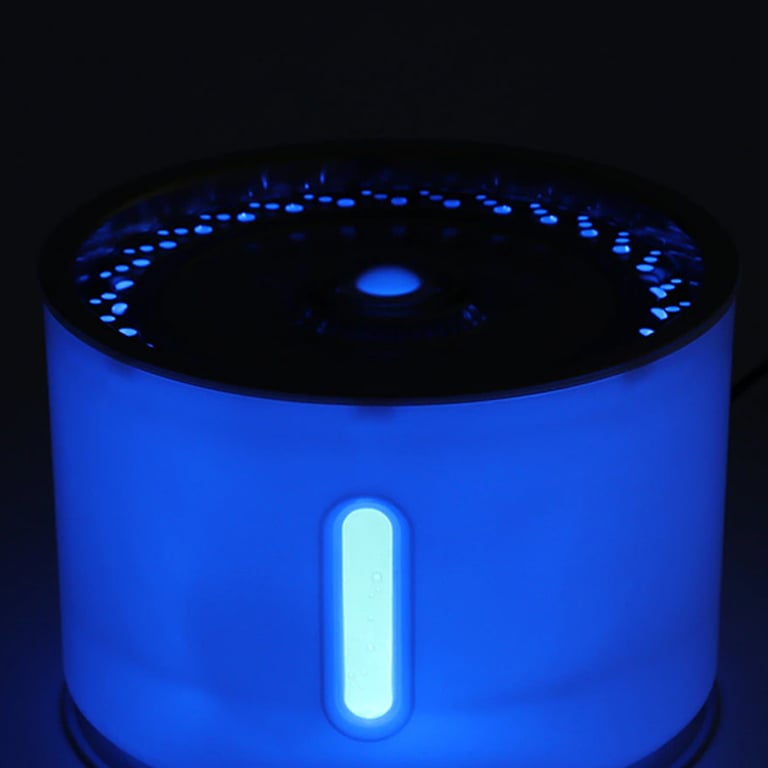 Cat fountain for maintaining your pet's hydration. Cats enjoy the water more due to circulation, and the flow and bubbling attract them just like when water flows from a tap. The device is illuminated with LED light.