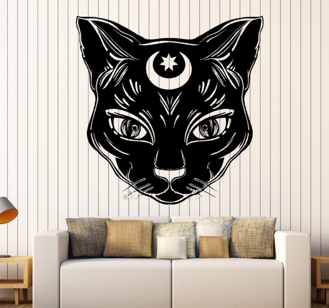 The sticker looks like a cat's head and is perfect for the home of any witch. It is black and comes in two sizes.