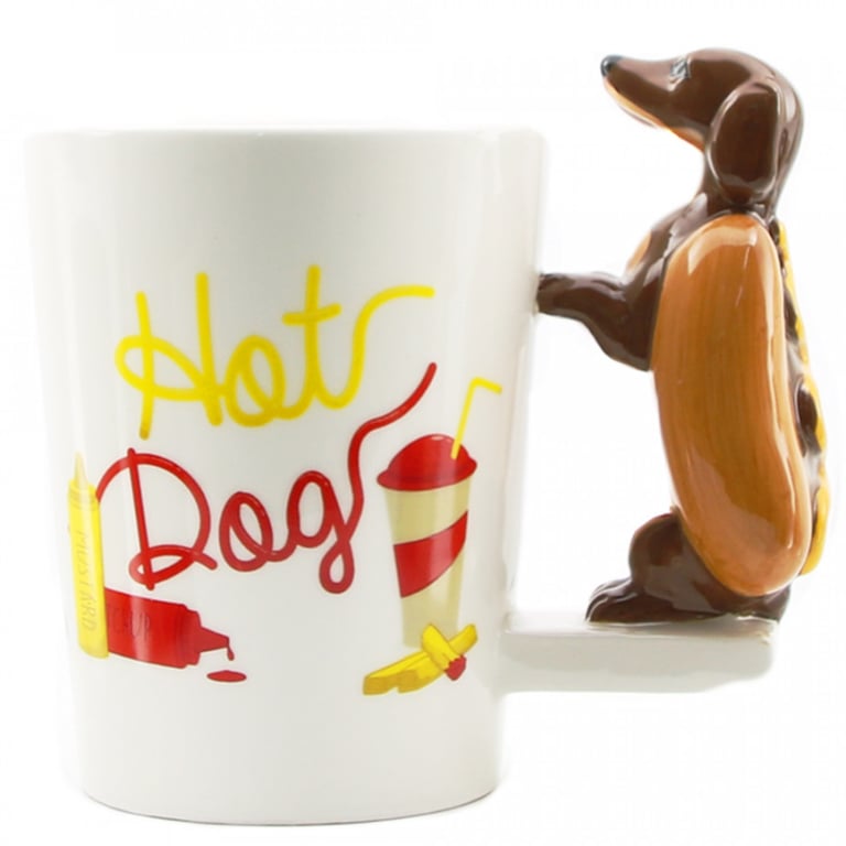 Ceramic 3D mug with a hot dog. A funny and original gift that is sure to amuse.