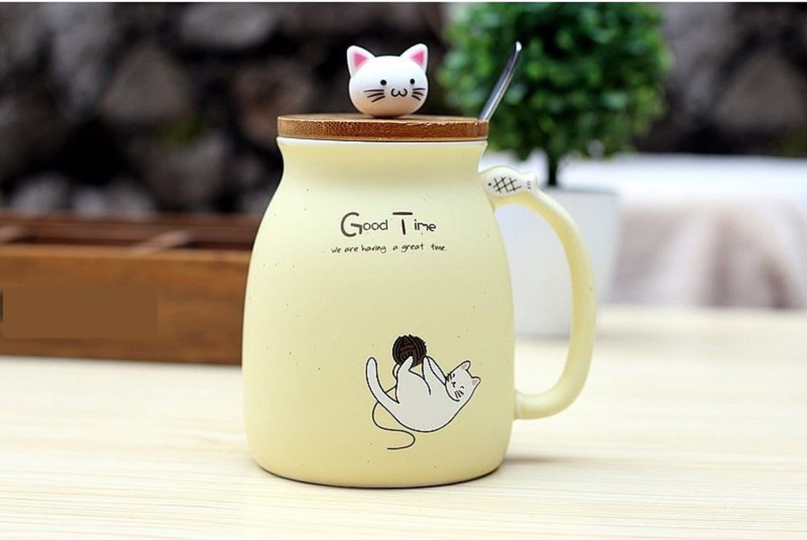 The mug comes with a lid and a spoon.