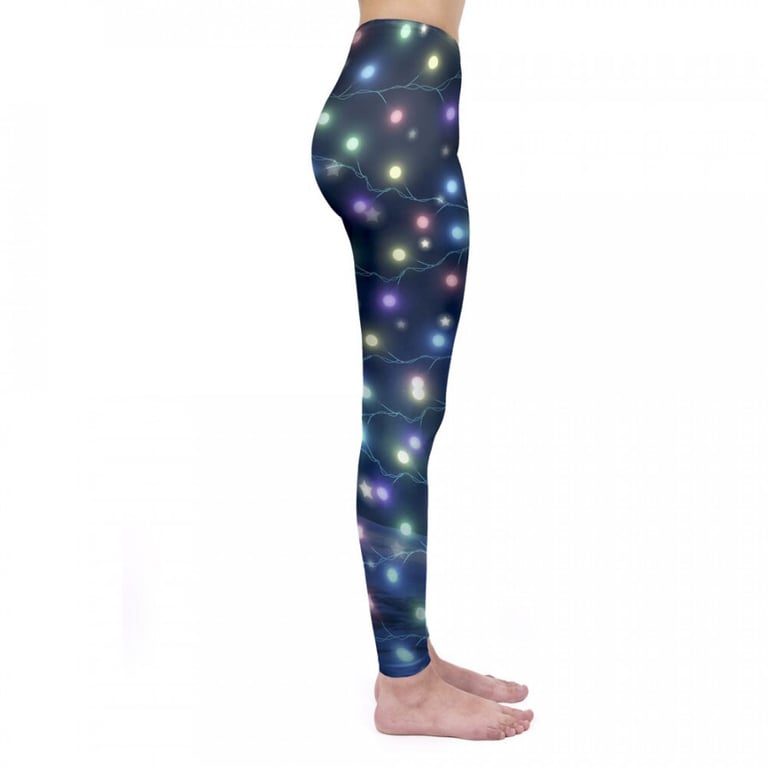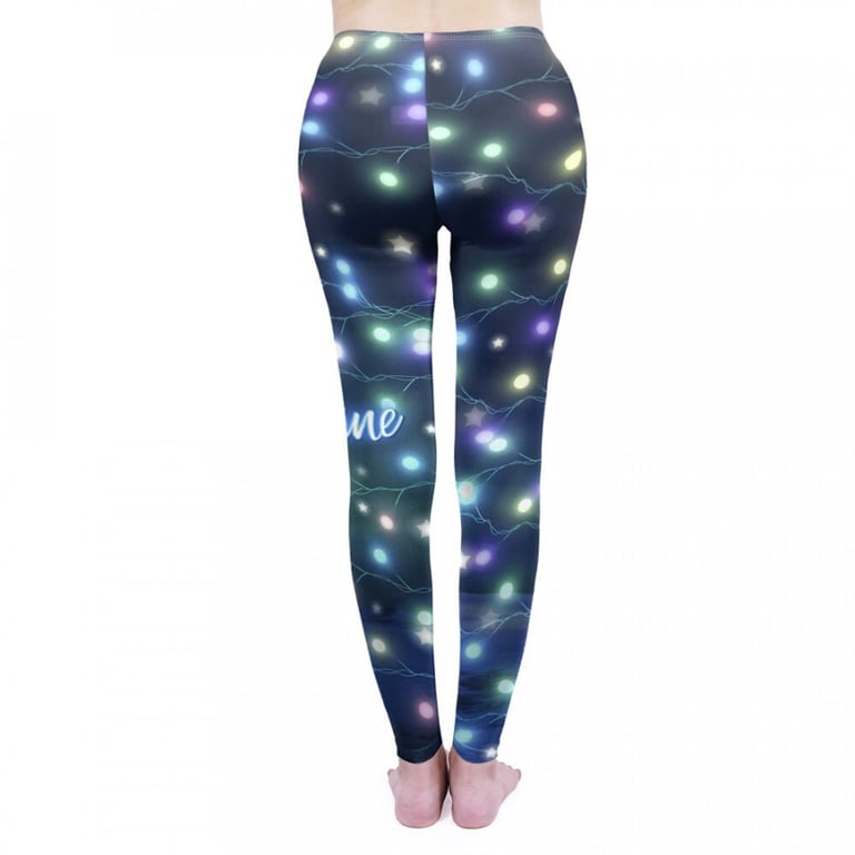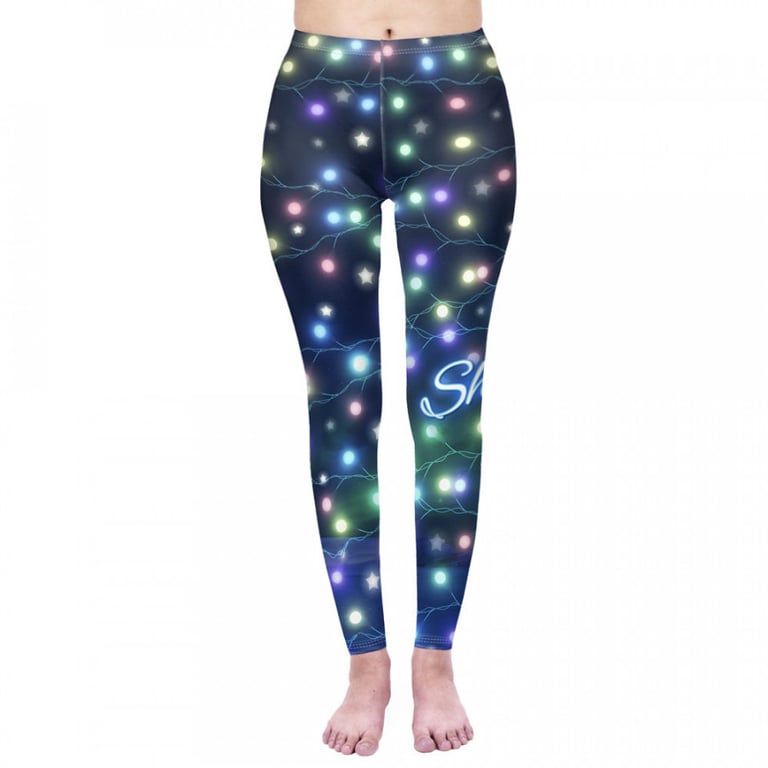 Women's leggings with a high elastic waistband. Long, slim legs. Colourful all-over print. Christmas motif.