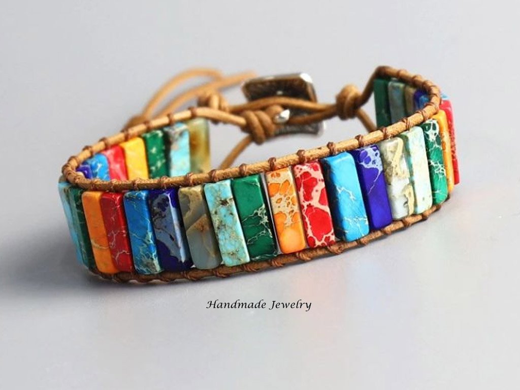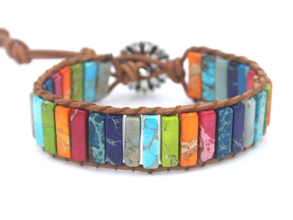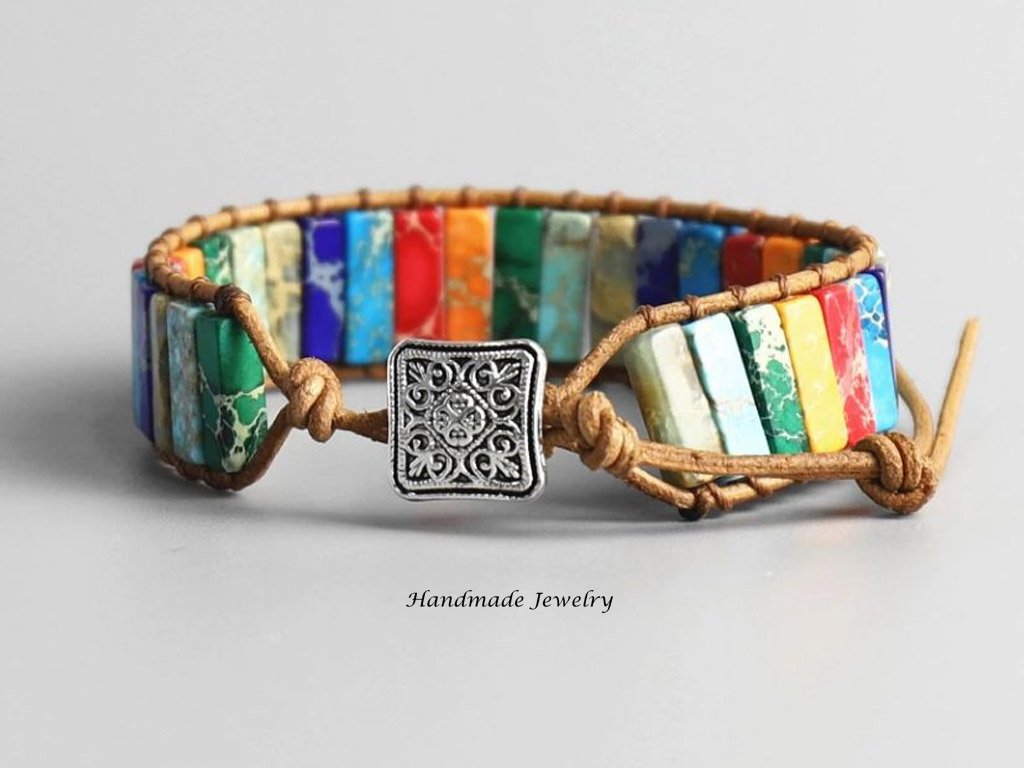 Strengthen your energy points in the body simultaneously with the colours of chakras and a handmade bracelet made from genuine leather and natural stones. With its vibrant colour design, it will surely be a decoration for your wrist. And if you are looking for a different colour scheme, you can choose from many other solid colours.