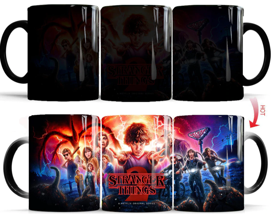 Changing mug with a Stranger Things design.