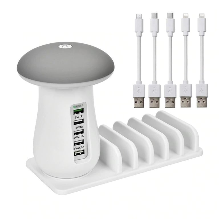Package contents: 1x charging station, 1x AC cable 1.2 m, 1x Micro USB 25 cm cable, 2x USB-C 25 cm cables, 2x Lightning 25 cm cables