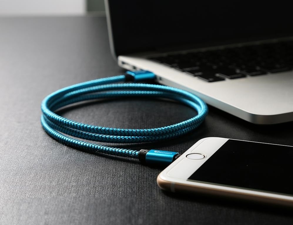 Charge your iPhone quickly and comfortably at home with this nylon-coated USB cable.