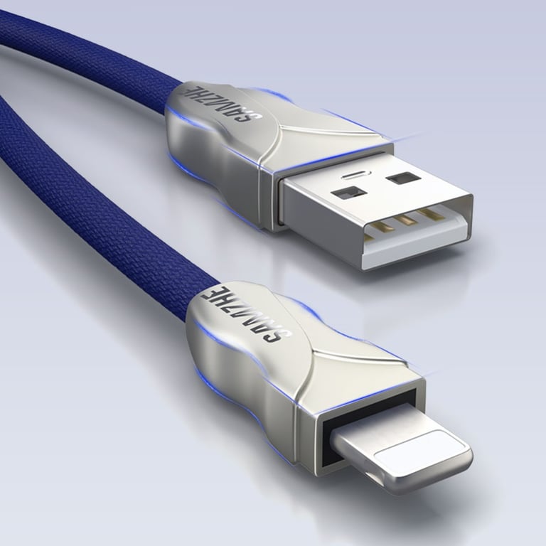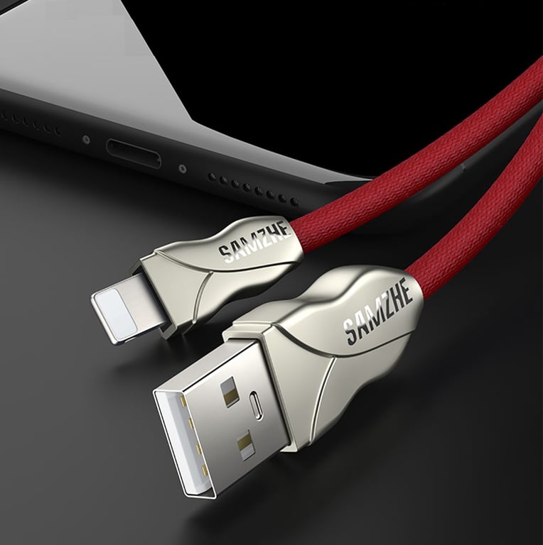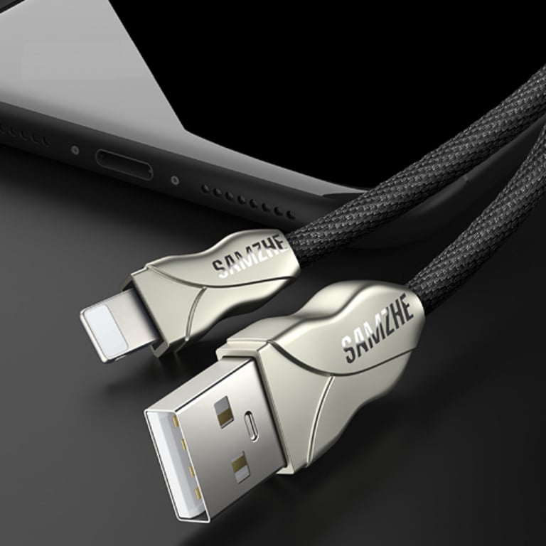 Charge your iPhone quickly and comfortably at home with this USB cable featuring a cotton sheath.