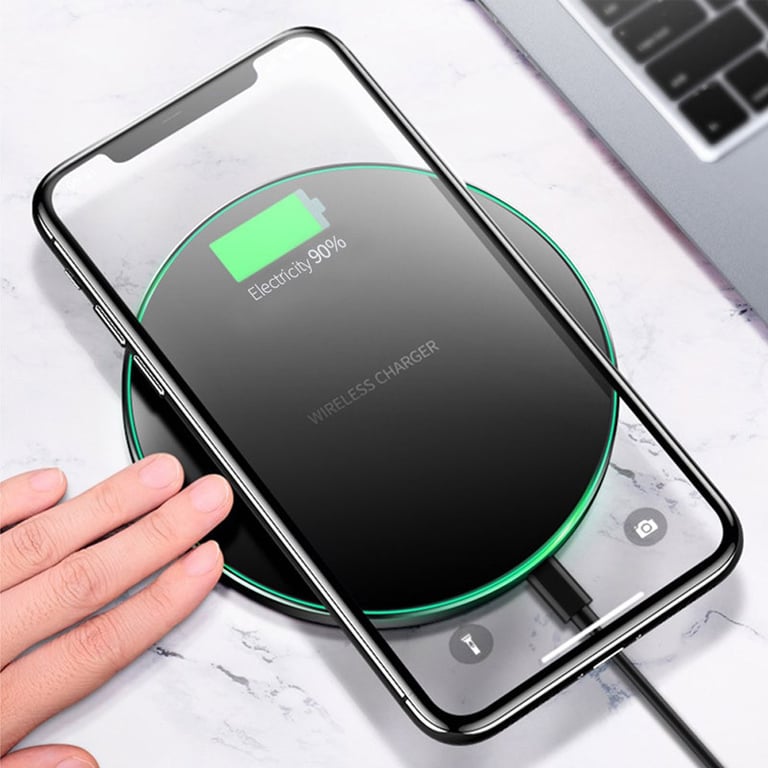 Wireless charging for mobile phones. Two charging modes. LED indicator light. Powered by micro USB. Thickness 6.5 mm. Easy to carry.