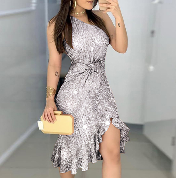 Charming evening shaping women's dress with sequins