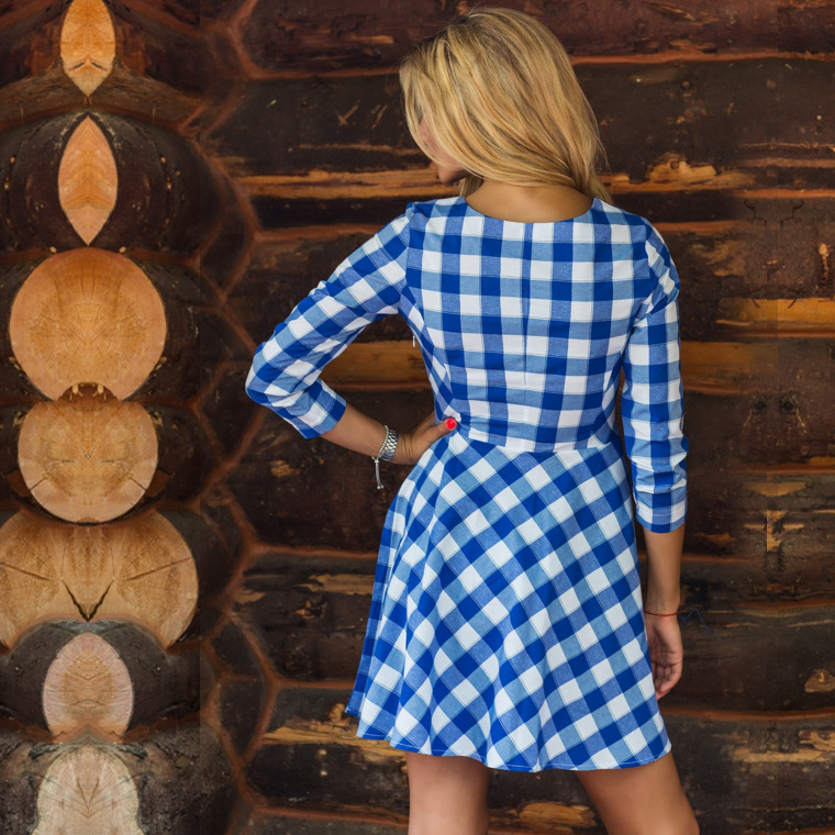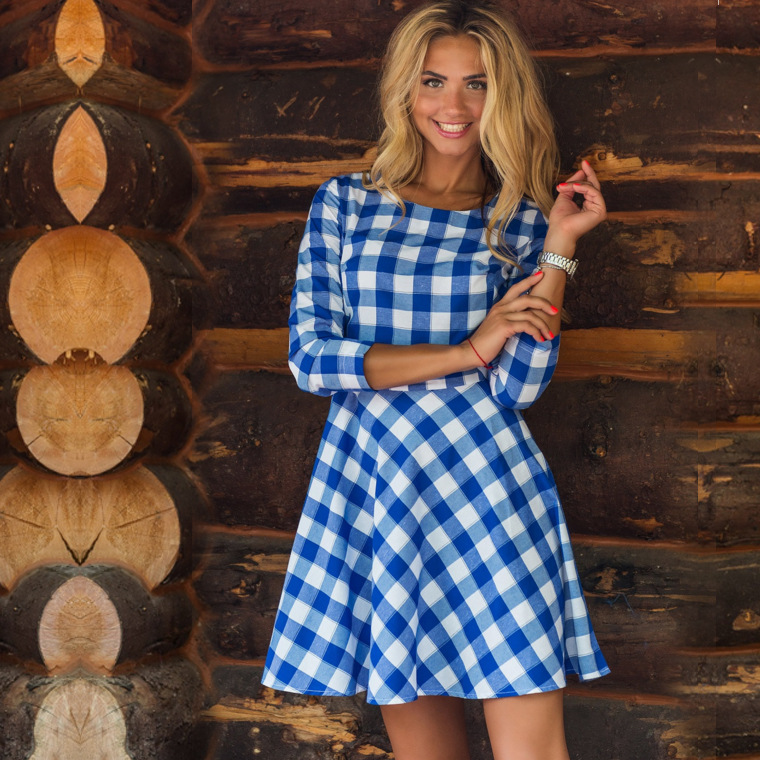 Checked eccentric interesting women's shirt dress