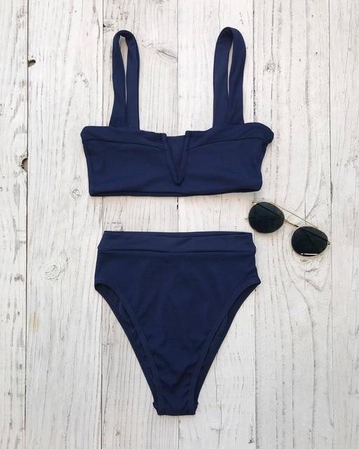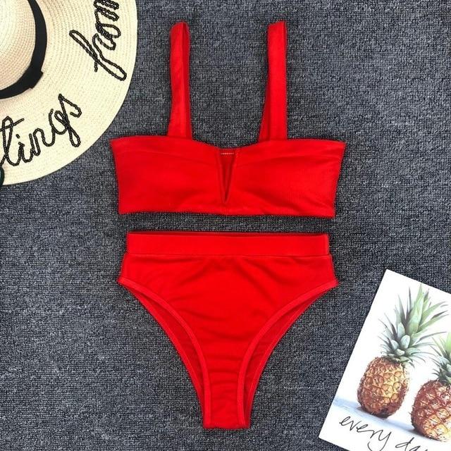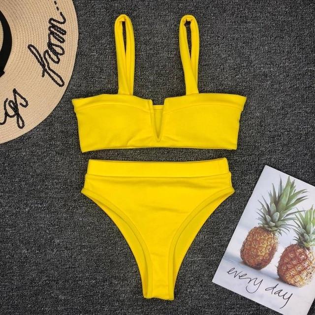 Women's two-piece bikini made of polyester and spandex. Available in several colours.