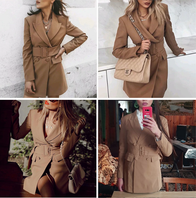 ChicLoom™ Khaki fine thin casual women's coat with a belt