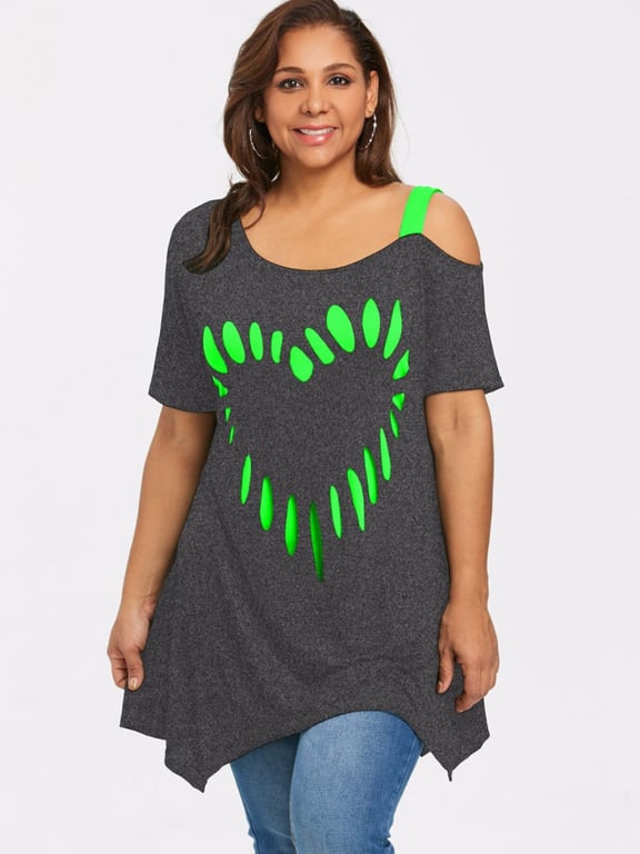 Plus size top with a decorative heart motif.