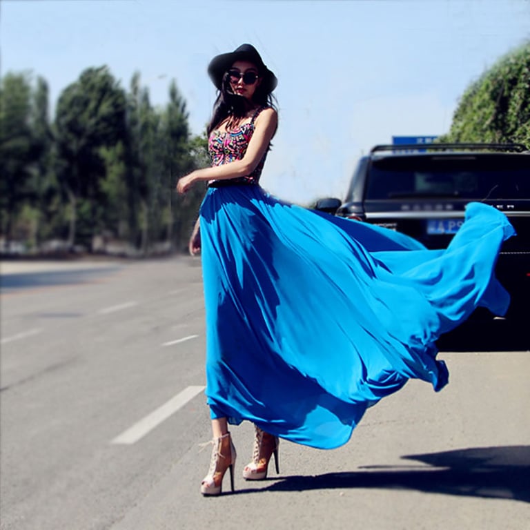Chiffon maxi long women's skirt with a high waist.