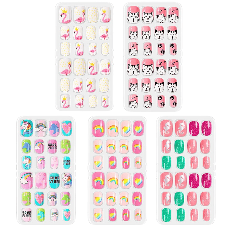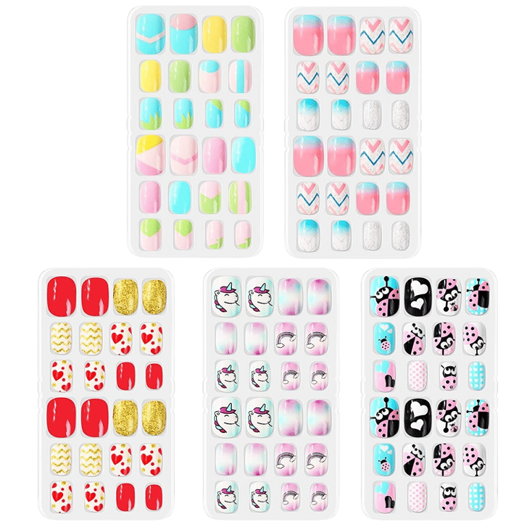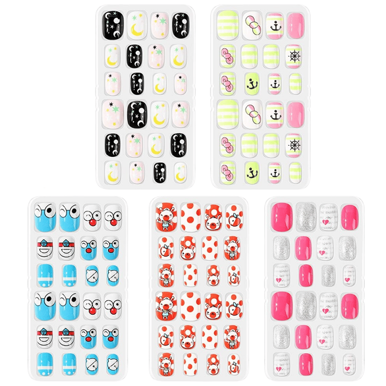 Children's stick-on nails are made from ABS material. Each pack contains several designs, perfect for children. The nails are easy to apply and remove, and they hold well.