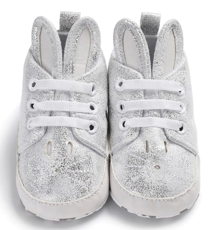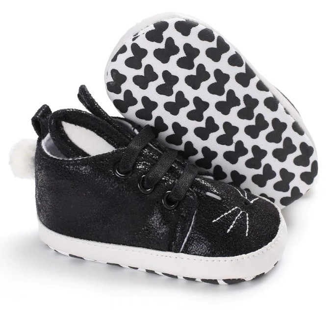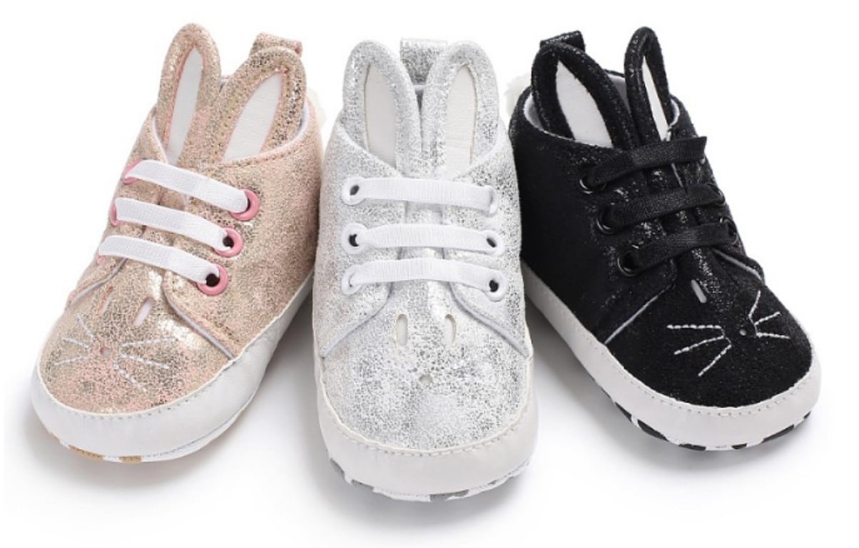 Children's ankle sneakers with ears are designed for the little ones taking their first steps.