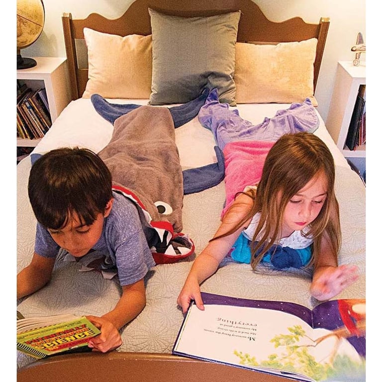 A blanket in the shape of a shark or a mermaid's fin, isn't that a dream for every child? Make them happy.