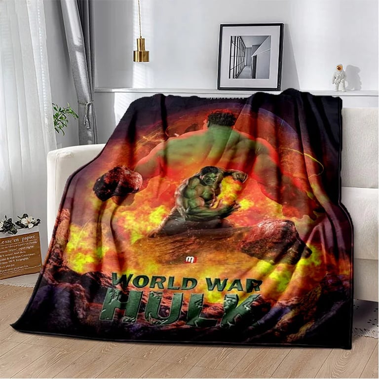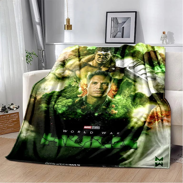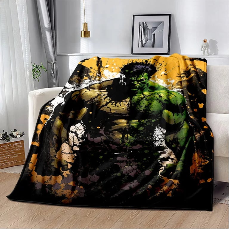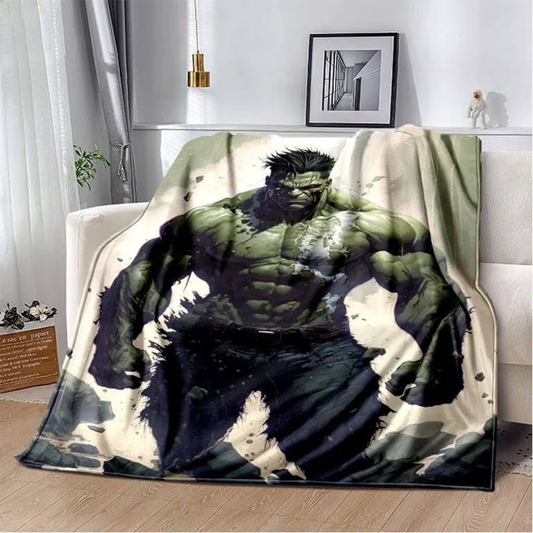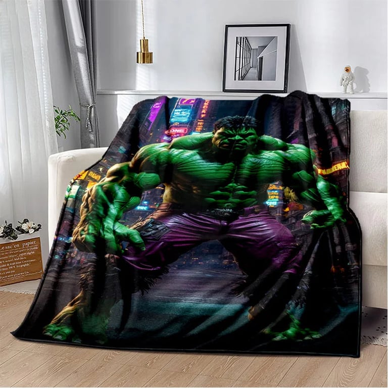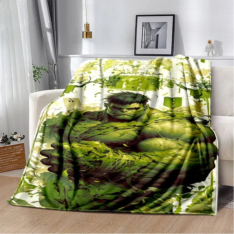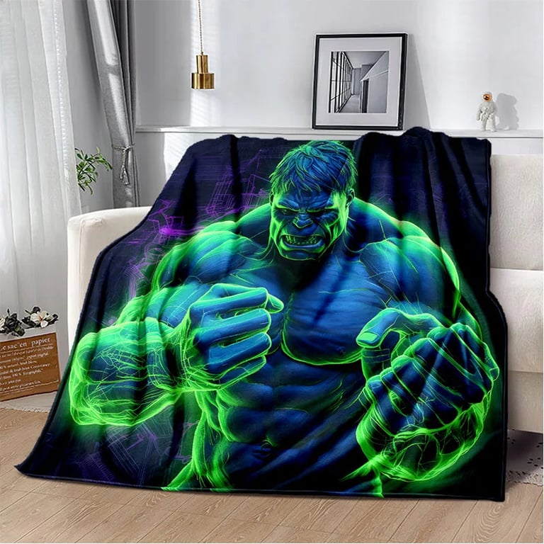 Children's blanket with 3D Hulk design.