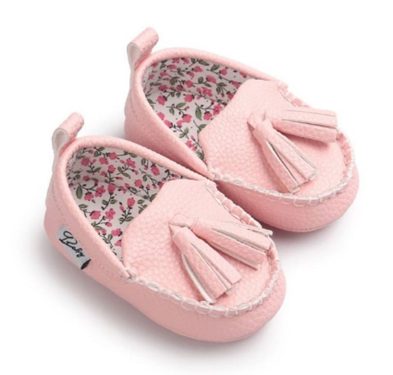 Children's slippers in the style of moccasins will make a great fashion accessory for a child's outfit.