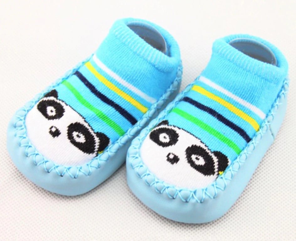 Children's booties with pictures are easy to slip on like socks and are very comfortable.