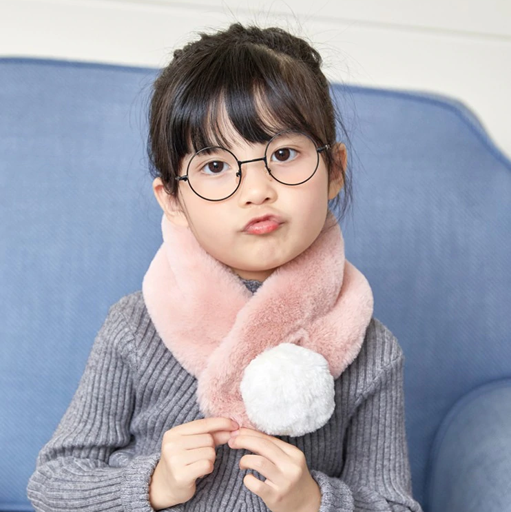 Children's braided scarf with pom-pom – 6 colours
