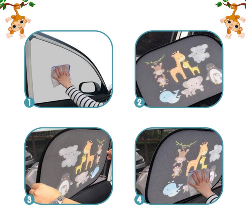 Children's Car Sun Shades with Animal Motifs – 2 pcs