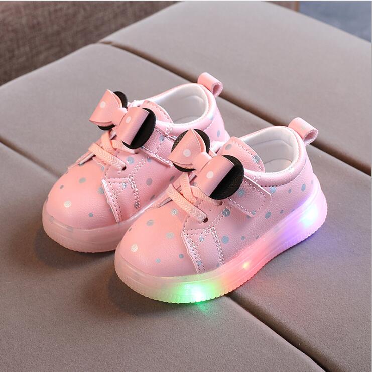 Get your kids these stylish LED shoes that they will surely fall in love with! You can choose from two colour options. The shoes are decorated with polka dots and ears, as well as laces. They can be combined with both jeans and dresses or skirts. These shoes are truly adorable and will definitely be appreciated by others around you.