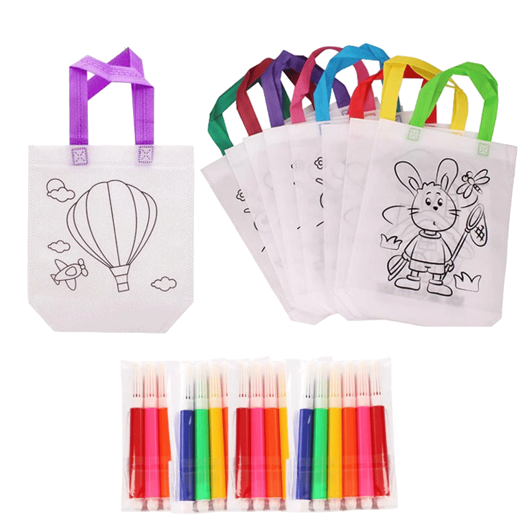 This set includes five non-woven fabric bags and markers, everything your child needs to start colouring. The bags are ideal for children who love to create. Children can colour the bags according to their own imagination.