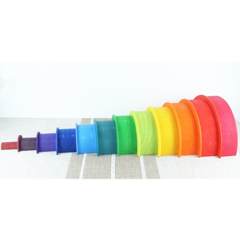 The water-based colours used are resistant to children's saliva. With this rainbow-shaped toy, you will support both the mental and physical development of children.
