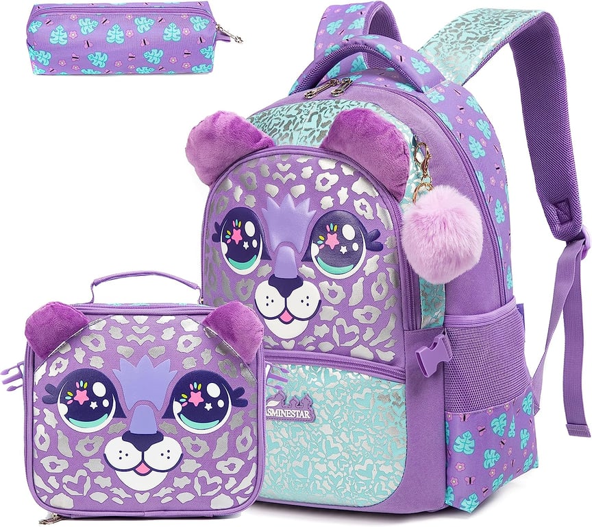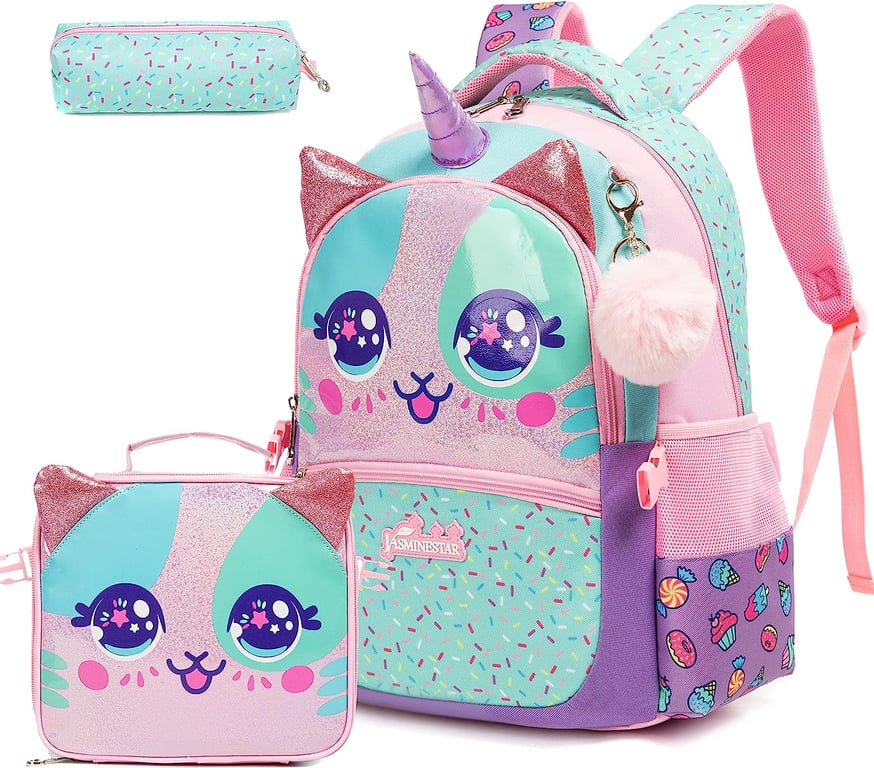Cute children's school set, which includes: backpack, pencil case and lunch box.