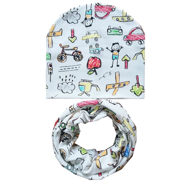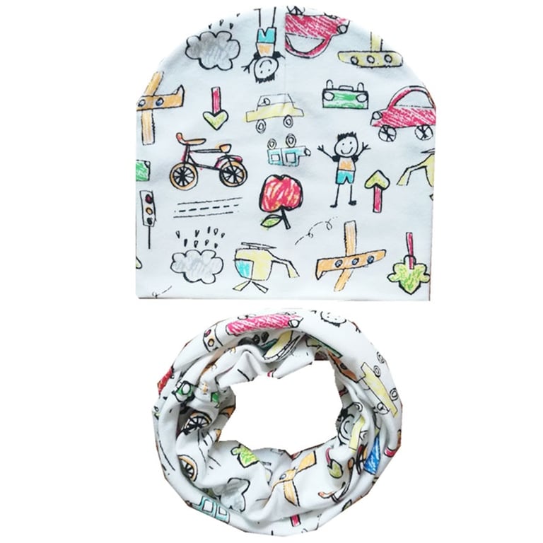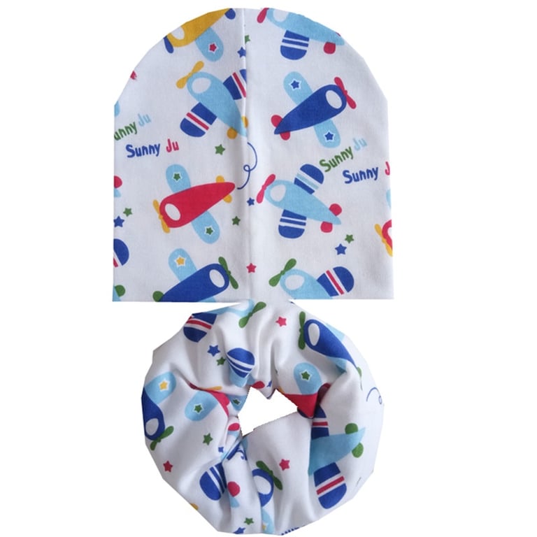 Children's Cute Spring Set – Hat + Neck Warmer with Airplane Print and More