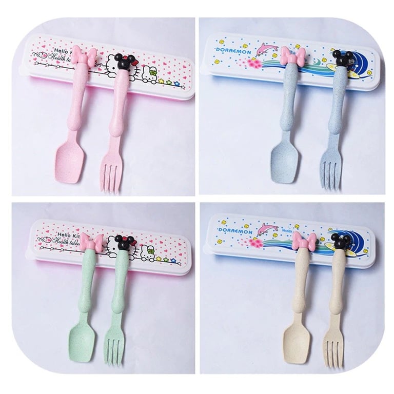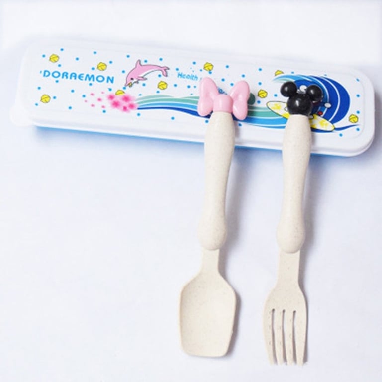 The children's cutlery set with a case is suitable for kids on the go.
