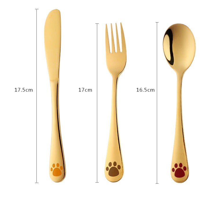The set is made of high-quality stainless steel and is decorated with a paw print.