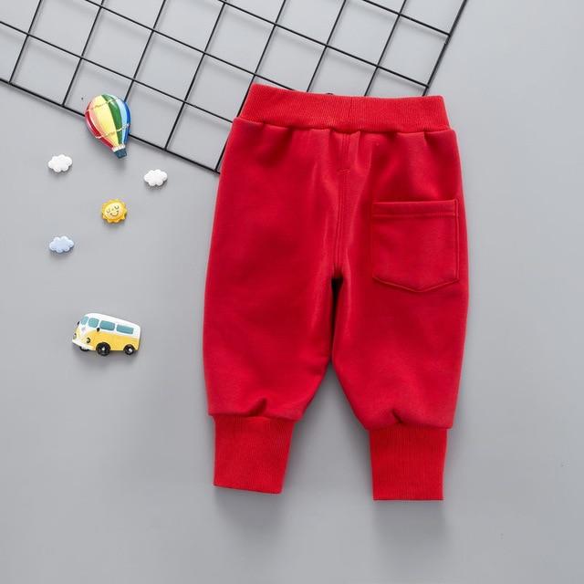Children's modern denim trousers. Available in two colour combinations. Adjustable with a drawstring.