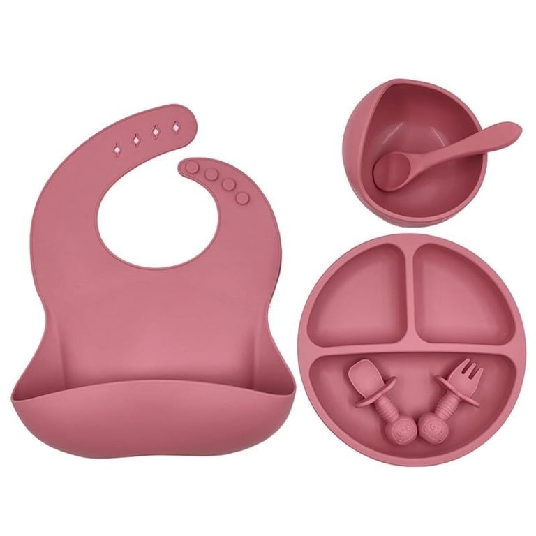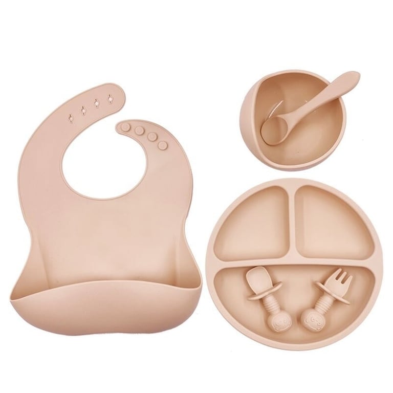 : 1x plate, 1x bowl, 1x fork, 1x spoon, 1x bib