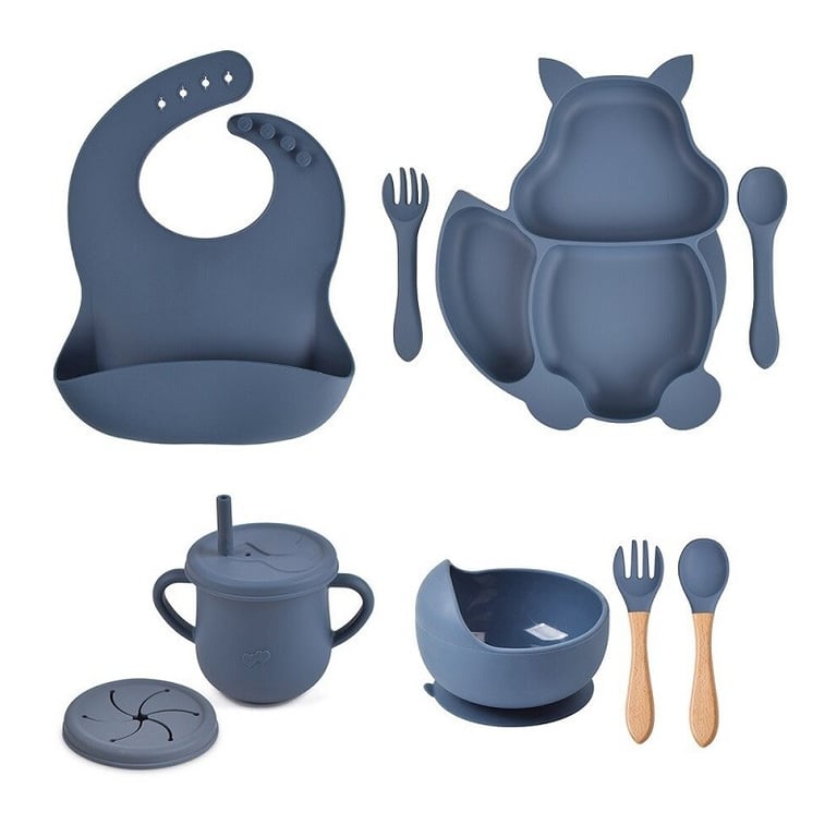 A high-quality and unbreakable dinnerware set for your child! It is made from silicone. The practical suction base ensures stability and your little one won't tip it over.