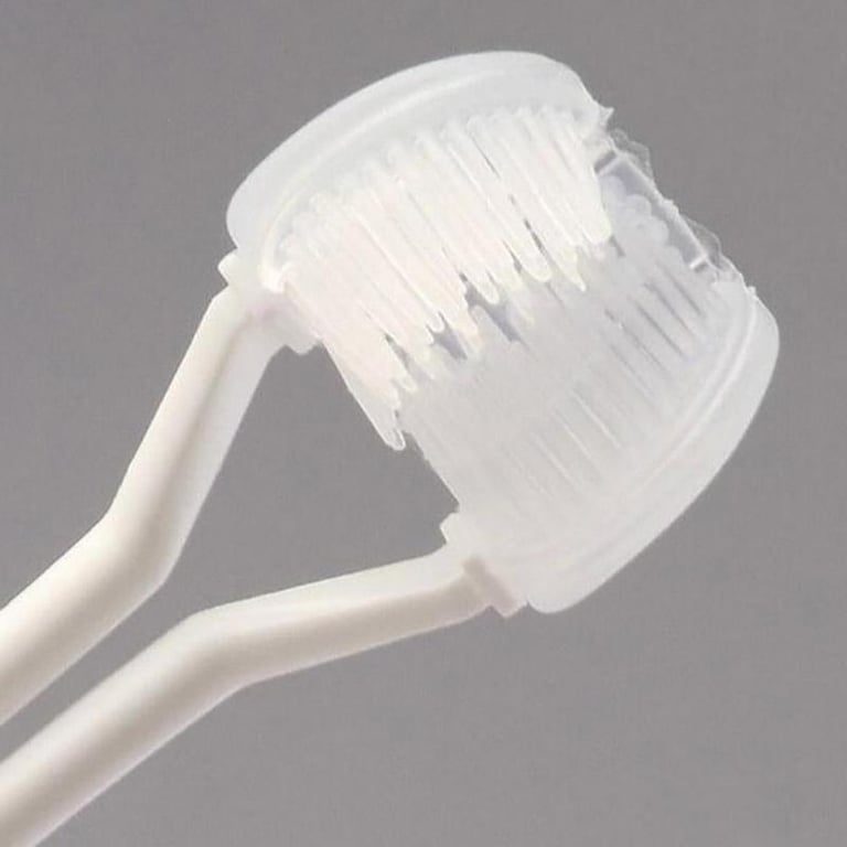 The children's double-sided toothbrush thoroughly cleans teeth from the outside and inside, removes plaque, and cleans the gums.