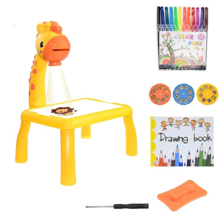 Package contents: 1x children's table, 3 projection slides (a total of 24 patterns), 1x drawing book, 1x set of markers