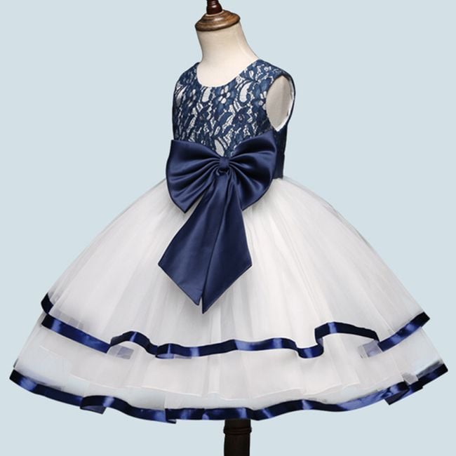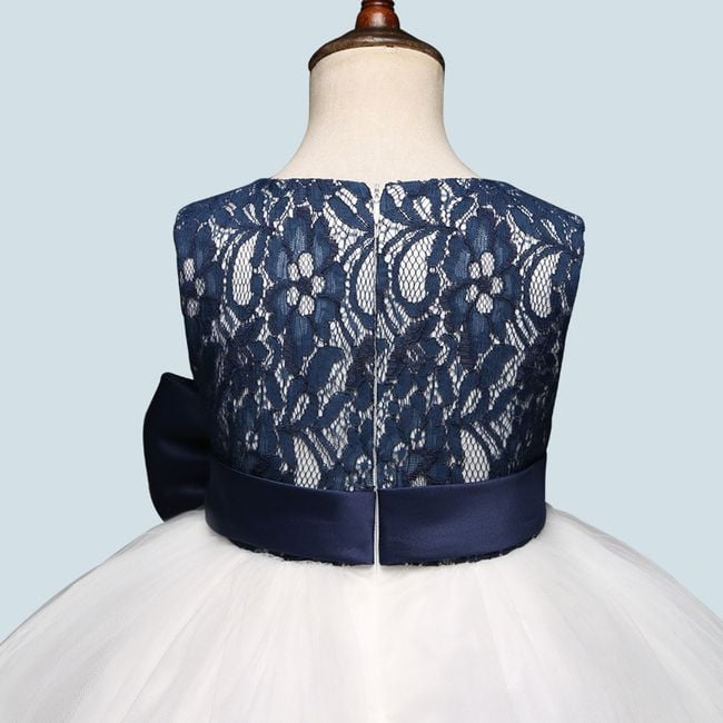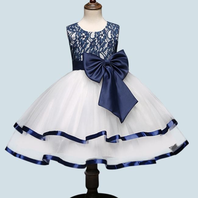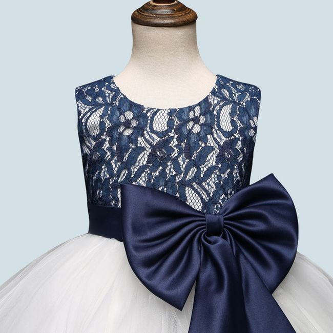 Children's dress with blue details such as a bow and lace! It will be an amazing piece for photography, weddings, and celebrations. The measurements provided are for the product, not the body.