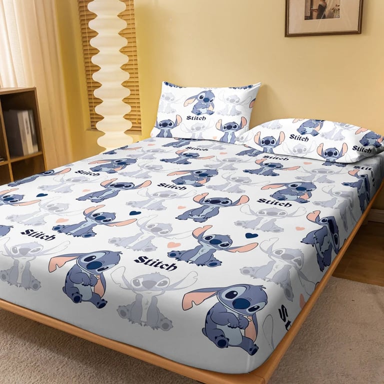 This children's elasticated fitted sheet featuring the Stitch motif from the popular Disney film will brighten up any child's bedroom and bring comfort and joy.