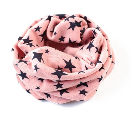 Over-the-head star-patterned neck warmer made of cotton jersey, which keeps children beautifully warm and protects against the wind.