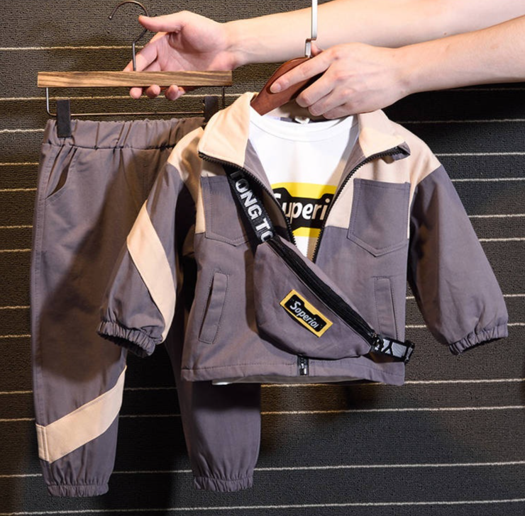 • Stylish children's set including a jacket, trousers, and a waist bag.