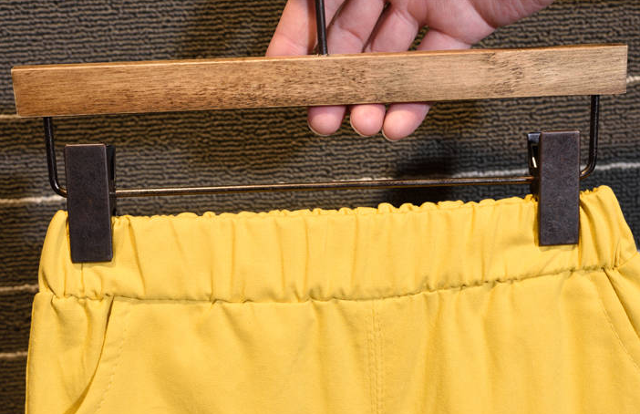 • Trousers with full-length legs, comfortable elastic waistband, two-tone, with pockets.