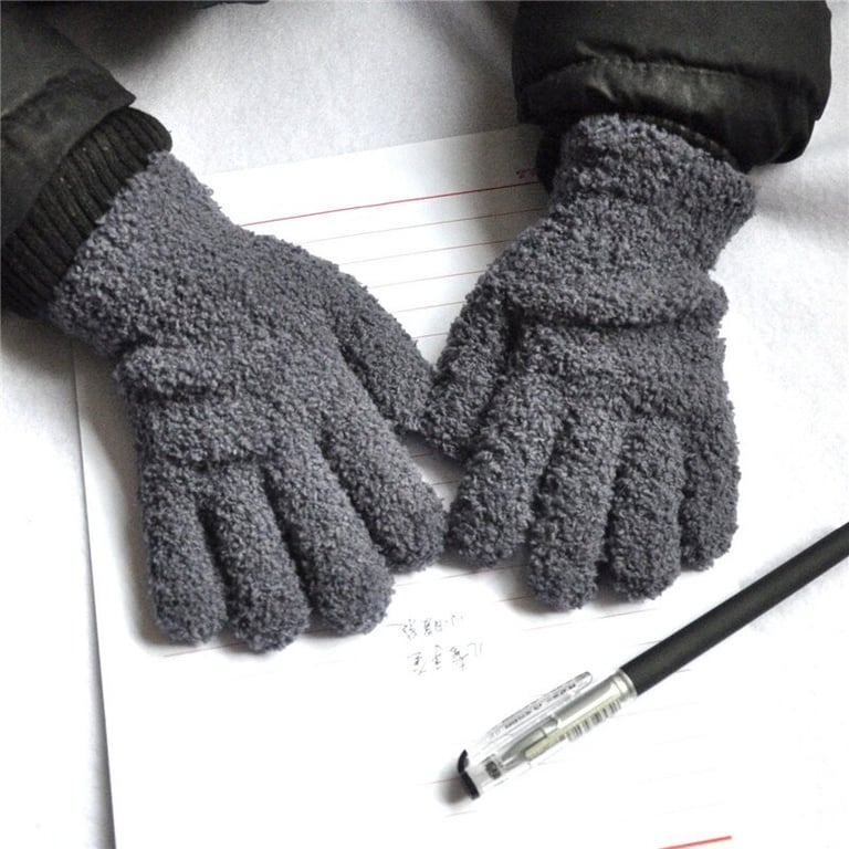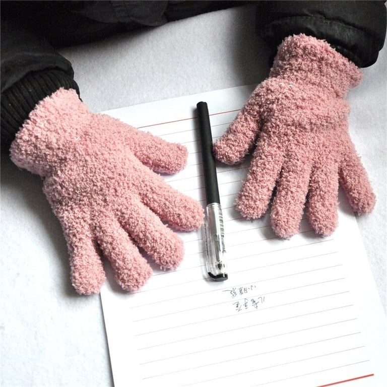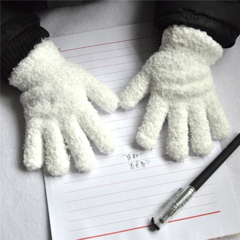 Solid colour children's finger gloves made from soft fluffy material.