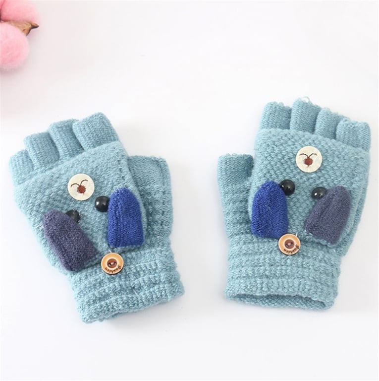 Children's fingerless gloves with a dog.