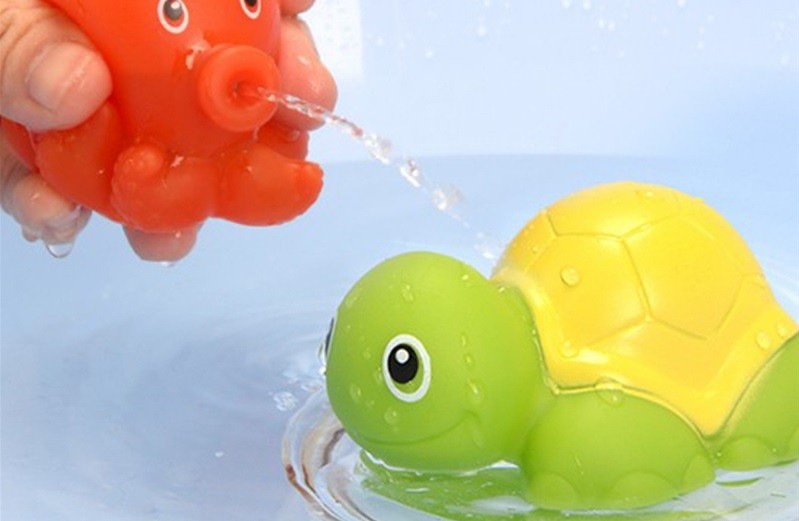 We suck water into the toy by pressing it underwater, and when we pull it out of the water, we squirt the water by pressing it.