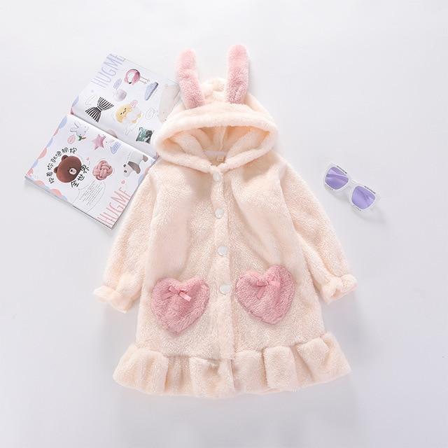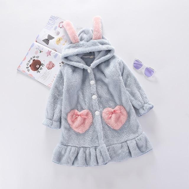 Children's flannel bathrobe for girls. The bathrobe opens with buttons. There are several nice colours to choose from.